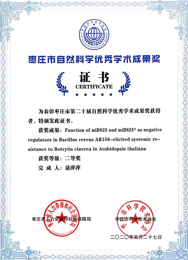 在教学的同时,积极投入到科研工作中,主要从事小分子RNA在植物内源免疫中,特别是在植物与真菌互作中的作用机理等表观遗传学研究,硕果累累,并及时将科研成果结合到课堂教学中,做到了“教”与“研”的无缝对接,带领本科生进入实验室,培养了学生的创新思维,拓宽了学生的专业视野。先后主持山东省推动黄河流域生态保护和高质量发展2023年省际合作项目1项、山东省自然科学基金项目1项、甘肃省科技成果登记1项、枣庄市科技发展计划项目1项、yl23411永利博士科研启动基金项目1项、企事业单位委托课题6项;在《Journal of Integrative Plant Biology》《Molecular Plant Pathology》《Frontiers in Plant Science》《International Journal of Molecular Sciences》等期刊上发表SCI论文多篇,其中SCI一区5篇、专利6项;荣获:甘肃省科技成果登记1项、“枣庄市第二十届自然科学优秀学术成果奖”二等奖、“yl23411永利2019年度高质量科研成果奖”二等奖。