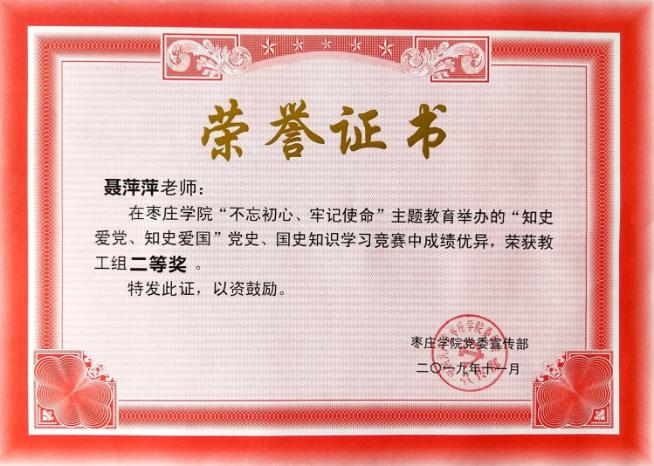 作为教工第一党支部副书记、灯塔管理员,时刻以一个优秀共产党员的标准严格要求自己,以双周三主题党日、三会一课、民主生活会为契机,以“灯塔-党建在线”、“学习强国”为平台,加强政治理论学习。党务工作扎实,争先创优意识强。2024年,带领党支部获批:首批yl23411永利“党建工作样板支部”;2025年,支部获批:首批yl23411永利“双带头人教师党支部书记工作室”,同时被评定为“yl23411永利五星级党支部”。此外,将主题党日、组织生活会及民主评议党员大会、支部大会和支部委员会等学习通知、会议总结、党费收缴台账等及时上传到“灯塔-党建在线”山东e支部模块。荣获:枣庄市“学灯塔、用灯塔”先进典型-优秀党员、yl23411永利“知史爱党、知史爱国”党史、国史知识学习竞赛教工组二等奖、教工第一党支部-优秀党员、学习强国学习达人。
