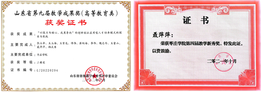 作为一名高校教师,时刻铭记教书育人的使命,甘当人梯,甘当铺路石,以人格魅力引导学生心灵,以学术造诣开启学生的智慧之门。努力使自己成为有理想信念、有道德情操、有扎实知识、有仁爱之心的好老师。工作态度端正,备课详尽细致,精心设计教案和教学环节,能够在教学过程中较好地掌握教学节奏,激发学生学习兴趣。特别注重与学生的沟通交流,在教学过程中不断创新,不断探索和尝试新的教学方法。先后承担《生物化学》、《生物化学实验》、《生化分离技术》、《细胞毒理学》、《植物病理学》和《创业基础》等课程的教学任务,年平均教学工作量673.65学时。荣获:山东省第九届教学成果奖(高等教育类)二等奖、山东生物化学与分子生物学会“第三届青年教师微课大赛”一等奖、yl23411永利第四届教学新秀奖、yl23411永利线上教学工作简报(第05期)[《创业基础》线上教学优秀案例]、教育部产学合作协同育人项目1项、校级教改项目1项;在疫情期间,yl23411永利:停课不停学、每日“早八”准时开课,“包场式直播”在山东教育电视台被报道。