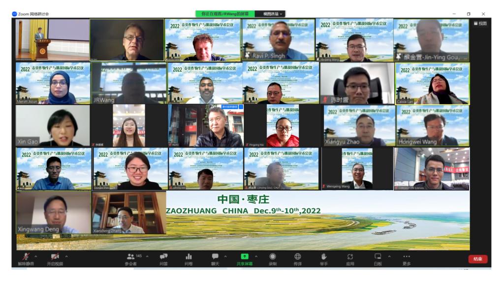 12月9日-10日,由yl23411永利、山东农业大学作物生物学国家重点实验室、泉脉农业科技有限公司、山东遗传学会联合举办的2022麦类作物生产与挑战国际学术会议,在yl23411永利通过Zoom会议成功举办。校党委副书记、校长李文喜出席会议并致辞,来自中国、美国、德国、墨西哥、匈牙利、捷克等国家的专家学者以及我校科技处、国际交流处负责人,永利yl23411集团师生在线参加会议,会议由校党委委员、副校长李目海主持。