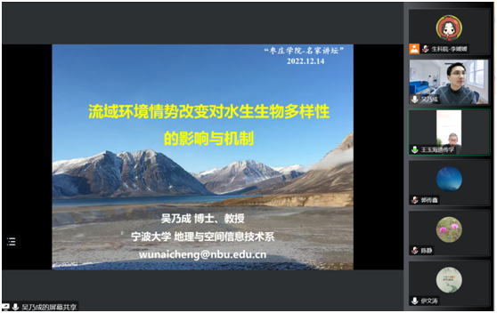 为进一步强化学术交流与合作,12月14日下午,由科技处主办、永利yl23411集团承办的“名师大讲堂”第十七讲学术报告活动通过腾讯会议成功举办。欧盟“玛丽•居里”学者、洪堡学者、宁波大学“浙东学者”吴乃成教授应邀作了题为《流域环境情势改变对水生生物多样性的影响与机制》的学术报告。