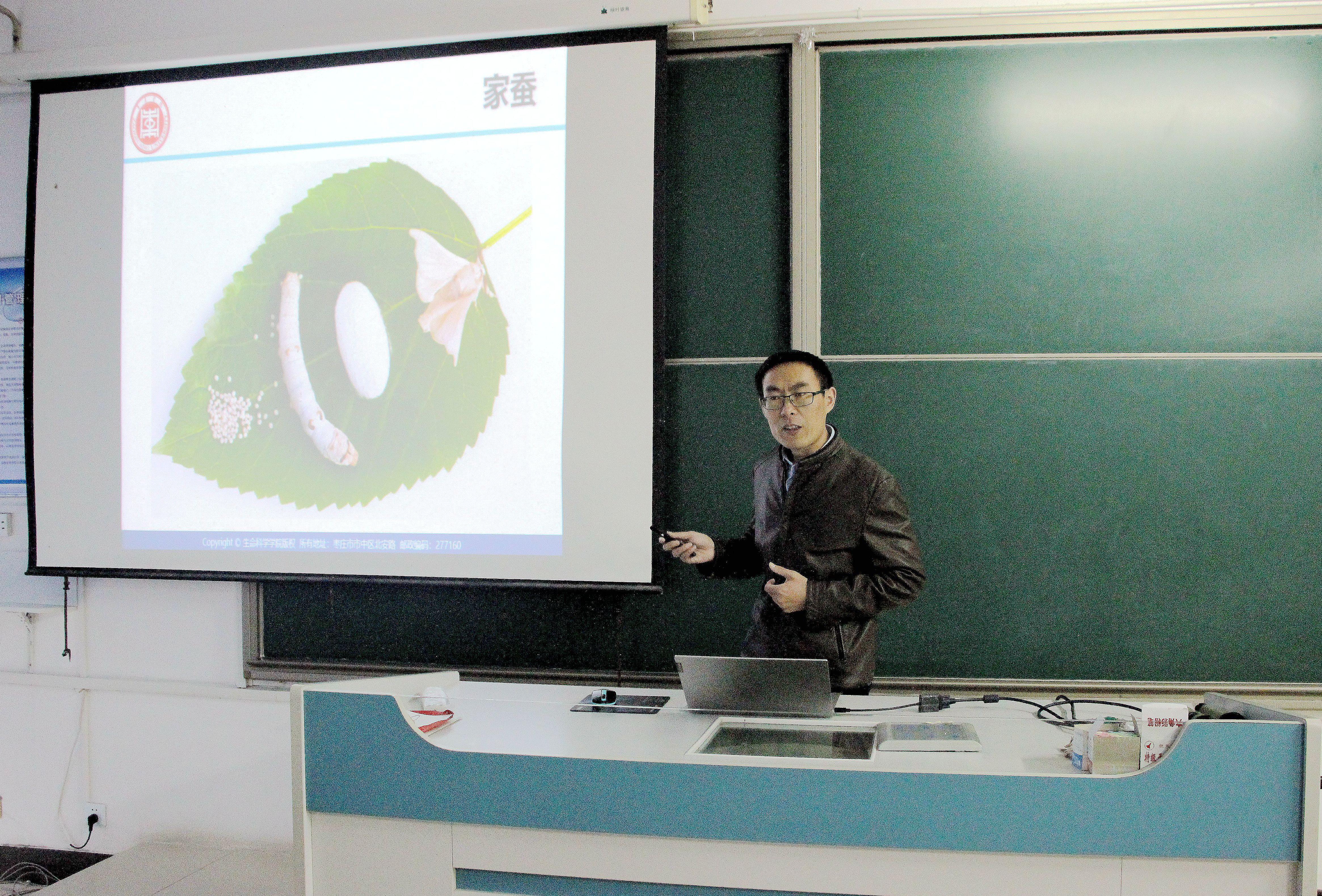 朱峰博士做了题为《有关家蚕微孢子虫与宿主之间的相互作用机制》学术报告。报告会围绕家蚕成长过程、茧壳颜色、被病原微生物感染、被细菌寄生以及微孢子虫等各方面进行展开,其中有关80S核糖体的研究取得了重大突破。报告会结束,朱博士针对学生提出的疑问进行了全面详细的解答,并与参会教师就相关问题进行了深刻的讨论与交流。