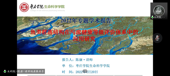 为营造良好的学术氛围,加强教师之间的学术交流,提高学生的科学素养,永利yl23411集团青年学者学术论坛于4月20日下午正式开坛,会上青年教师陈康博士通过腾讯视频会议为学院师生做了题为《鱼类群落结构在河流健康等级评价体系中的应用研究》的专题学术报告。