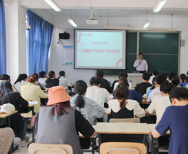 宣讲会上,韩笑代表学院向杰诺生物酶有限公司领导的到来表示欢迎和感谢。随后王昌斌主任对公司简介、企业文化、企业员工培养模式、企业目前的发展状况及发展前景与同学们作了详尽的分享,对本次招聘岗位与人数、岗位描述、任职要求也一一进行了解说,并希望同学们都能找到自我实现的价值与目标,并为之而努力奋斗。会后,部分同学在现场进行了交流解答。