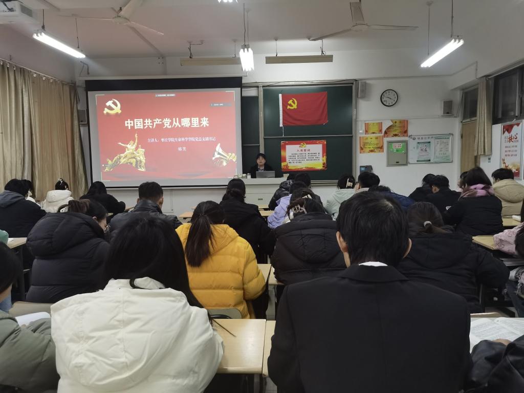 11月29日下午,永利yl23411集团党总支副书记韩笑在理工楼2207为学生党支部党员上了一堂题为《中国共产党从哪里来》的党课。