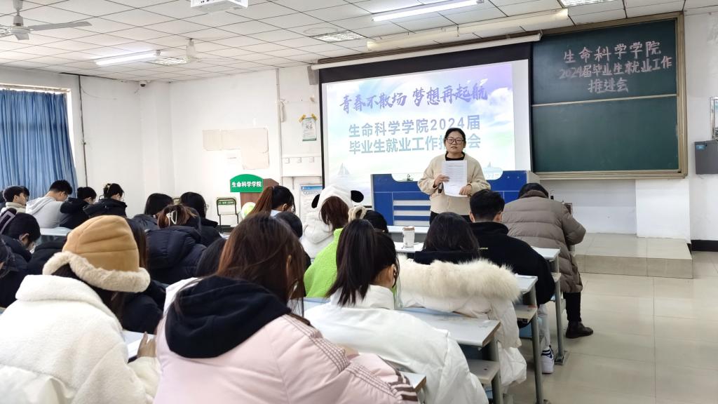 团总支书记王正荣就寒假安全教育、考研复试、毕业设计等工作对毕业生进行提醒;辅导员陈丽对劳动合同、求职应聘相关工作向毕业生进行说明,提醒同学们及时关注学校、学院发布的就业信息;辅导员李山介绍了毕业生征兵入伍的政策和报名流程,鼓励有入伍条件和意愿的同学积极应征入伍,从戎报国;党总支副书记韩笑进行就业动员讲话,提醒同学们要认清当前就业形式,做好合理规划,抓住就业黄金期早准备、早行动。
