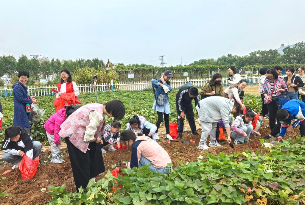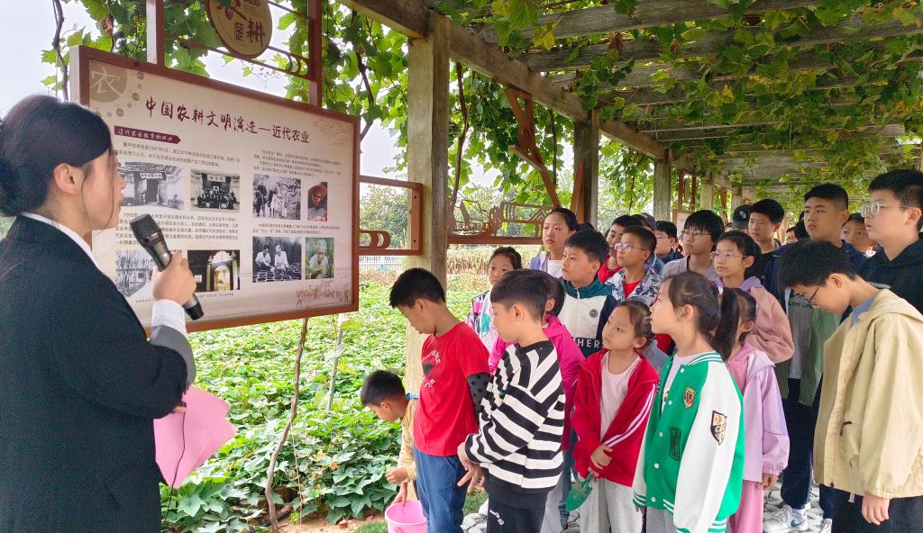 随后,讲解员以生动的语言和丰富的图片,带领大家学习中国农业发展史,欣赏丰富多彩的历史农耕图文,向学生们传递着劳动创造历史、劳动铸就辉煌的重要理念;指导教师马旭辉带领学生们认识园地内种植的粮食、蔬菜、果树等植物新品种,体验田间耕作采摘红薯,开启了“秋收”劳动体验与实践。大家亲手采收挂着泥土新鲜的红薯,从中体验到农耕的快乐,感受劳作之辛,收获劳动的喜悦。