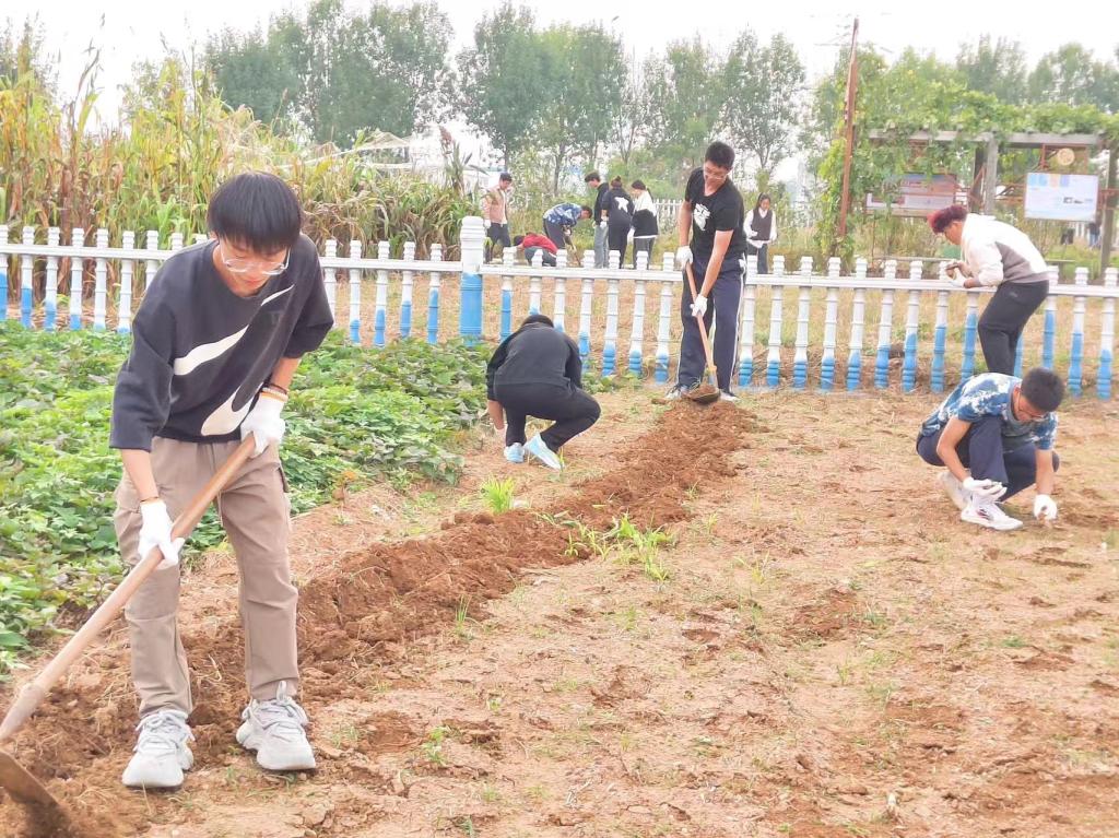 随后,同学们深入田间地头,以小组的形式科学有序开展劳动实践活动。有的挥舞锄头开荒除草、有的中耕松土清除田间石块,大家热情投入,分工合作,菜园在大家的劳作下显现出勃勃生机。