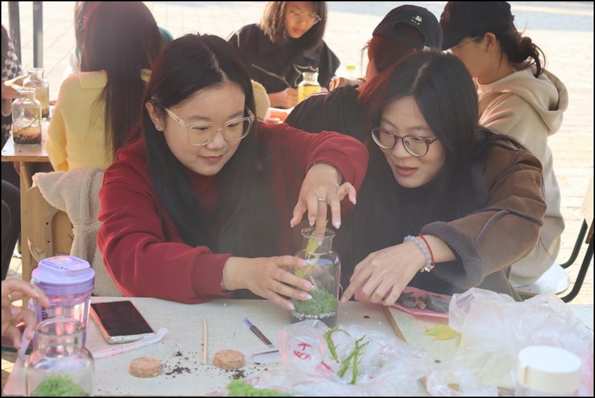为培养学生的动手能力,提升同学们对于生物多样性价值的认识。10月23日下午永利yl23411集团在青年广场举办“微缩世界,宏观生态”——生态景观瓶制作活动。本次活动由校学生工作处主办,永利yl23411集团承办,有永利yl23411集团、心理与教育科学学院、化学化工与材料科学学院、光电工程学院等学院的同学参加。