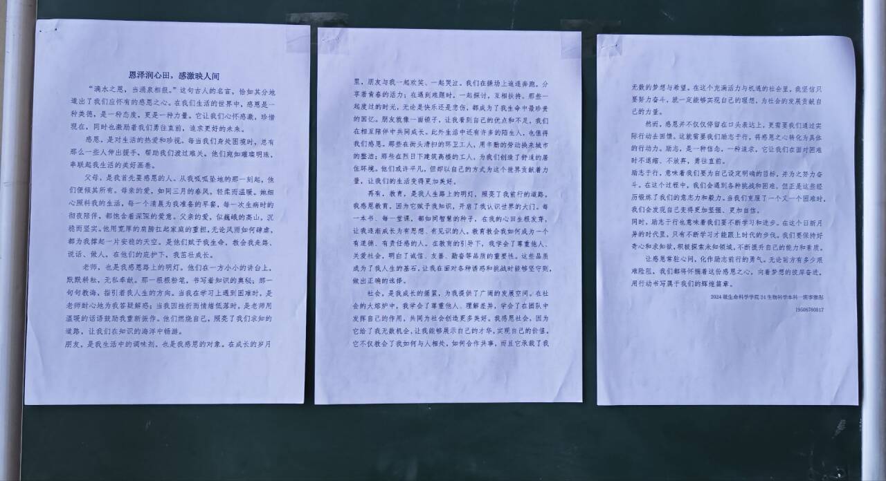活动中,同学们用真挚的情感讲述了父母的养育之恩、老师的教诲之情、朋友的陪伴之义,以及在成长过程中所遇到的那些给予自己帮助和鼓舞的人和事。参赛作品共50余份,最终评出一等奖2名,二等奖3名,三等奖5名。