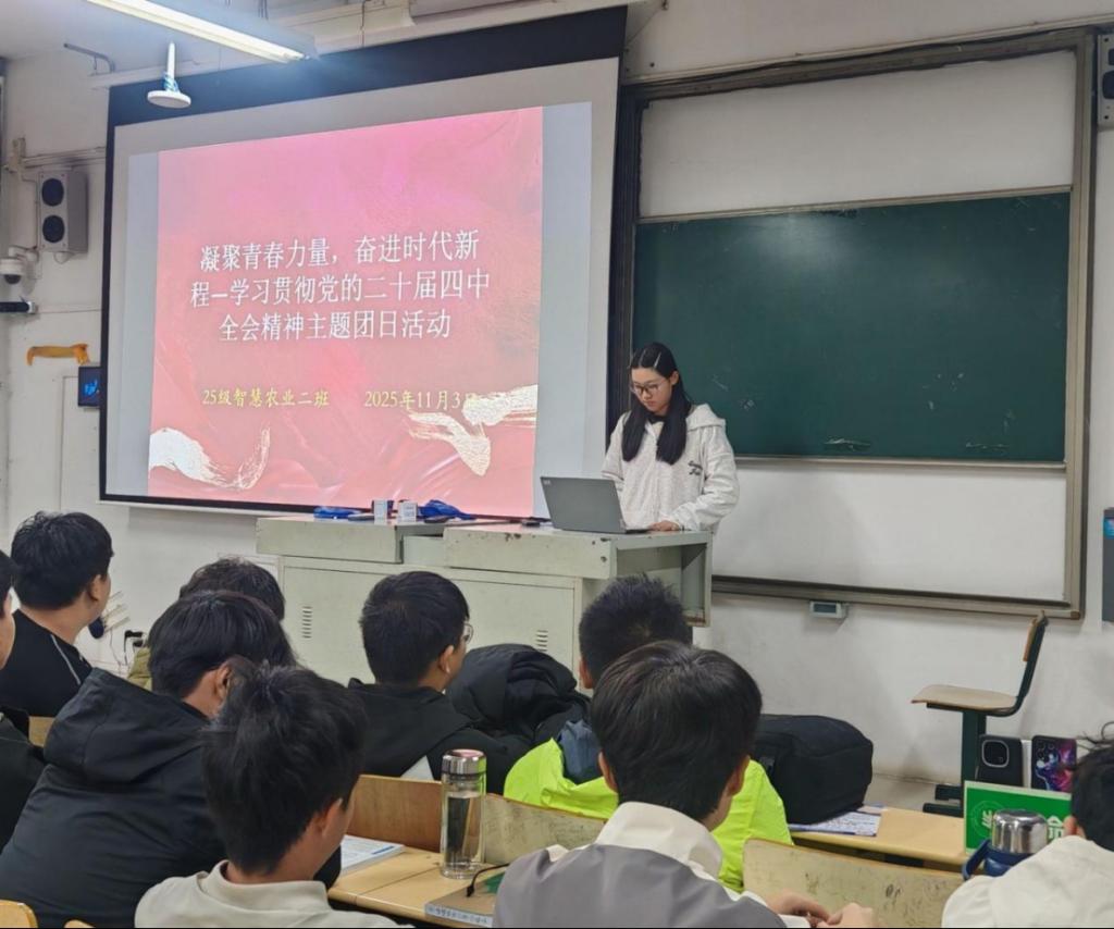 为深入学习贯彻党的二十届四中全会精神,引领广大青年学子坚定理想信念、勇担时代使命,11月3日,永利yl23411集团组织各班级团支部集中开展了“凝聚青春力量,奋进时代新程——学习贯彻党的二十届四中全会精神”主题团日活动。全院同学积极响应,踊跃参与,活动由各班团支书主持。